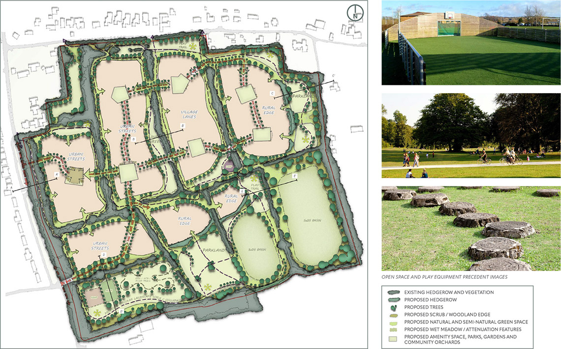 - Large, dedicated area for formal sports and play provision in the southwestern corner of the scheme.